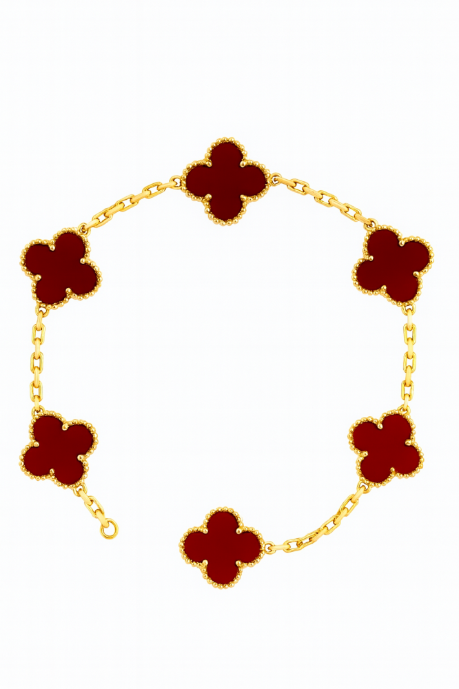 الوصف: سوارة كليف 5 وردات حجر أحمر طبيعي
